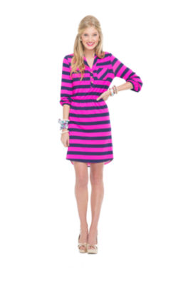 | Beckett Dress in Mambo Pink Polka Dot Stripe |
